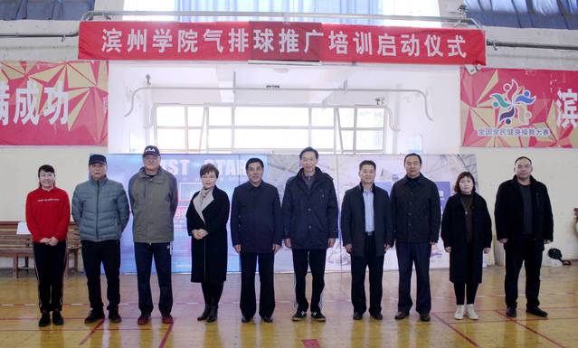 12月24日下午,由QY球友会体育、体育学院、排球协会联合举办的滨州学院气排球推广培训活动在校风雨操场(篮球馆)正式启动。滨州市排球协会主席路军出席活动并讲话;QY球友会体育党委委员、宣传部部长,排球协会主席索向兴主持活动启动仪式;工会主席、妇委会主任韩军华,体育学院党总支书记马新民、院长张红霞,工会副主席刘明烈等领导出席活动。