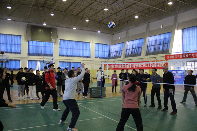 本次推广培训活动,以“气宇轩昂、跃动滨院”为主题,吸引了来自全校的50余名教职工会员和40余名学生参加。启动仪式后,排球国家级裁判员李振副教授、体育学院退休教师王惠棣副教授分别对男女会员进行了培训,讲解了气排球的竞赛规则和挡搬、捧球、捞球等基本技术。培训结束后,滨州市老年气排球队与滨州学院气排球队进行了表演赛,比赛过程中队员们精湛的球技和精彩的救球赢得现场观众阵阵掌声。