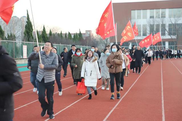 启动仪式后,参加活动的校领导和教职工共同到田径运动场进行了800米健步走。