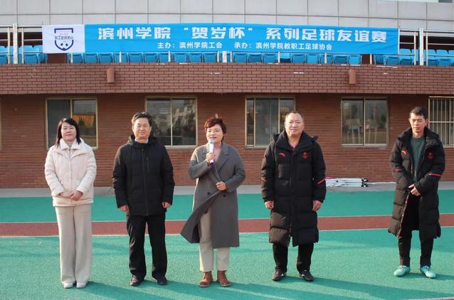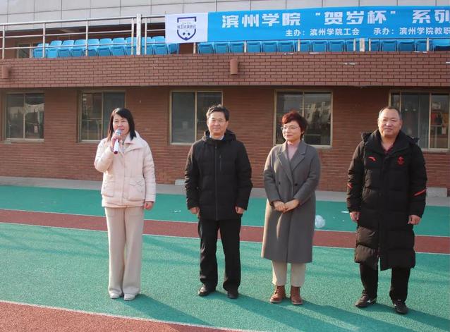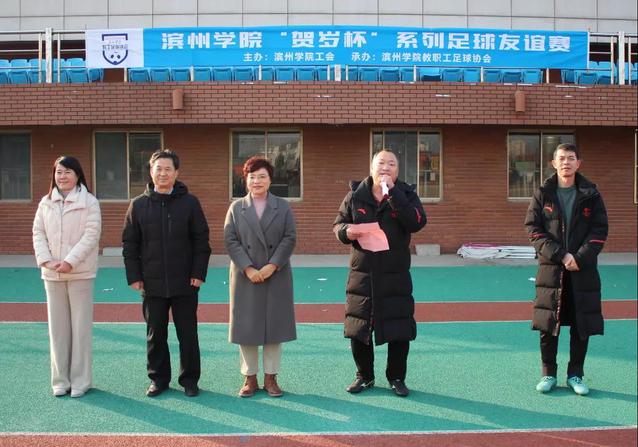 2022年1月1日下午,由QY球友会体育主办、教职工足球协会承办的2022年“贺岁杯”足球友谊赛在学校田径场成功举行。工会主席、妇委会主任韩军华,体育学院党总支书记马新民,体育学院院长、工会文体活动委员会主任张红霞,滨城区教体局体卫艺科科长、飞扬80足球队秘书长吴绍军等领导出席活动,QY球友会体育教职工足球协会主席殷晓辉主持开幕式。
