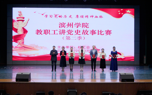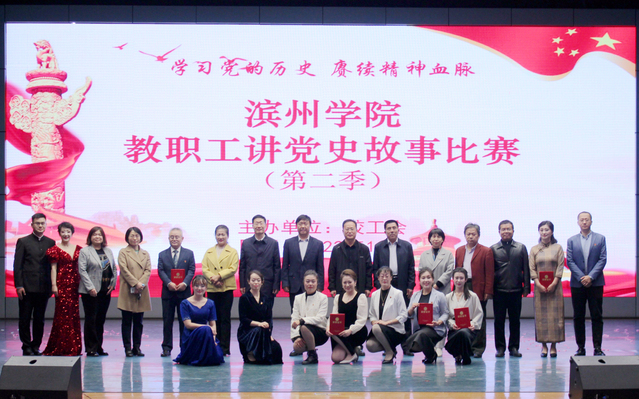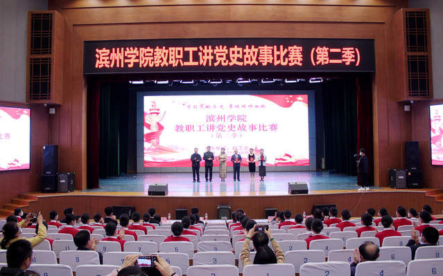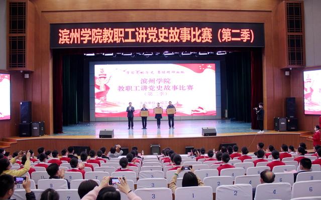 10月27日晚,滨州学院教职工讲党史故事比赛(第二季)在学苑会堂举行,校党委委员、副校长李伟年、杨玉森、郭新伟、孙银河,党委委员、宣传部长索向兴、统战部长林晓金等领导出席活动。比赛邀请研究生处处长闫永利、纪委副书记王晓平、国际交流与合作处处长曲福华、教师教育学院院长徐慧文、校报编辑部主任苏玉娜等专家担任评委。学校有关部门和二级学院负责人、各基层分会主席、师生代表400余人观看了比赛。